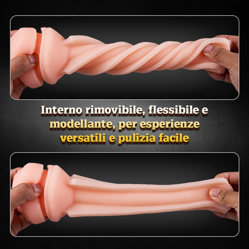 Guscio interno removibile, estremamente elastico, con particelle interne per una sensazione vaginale particolarmente realistica.