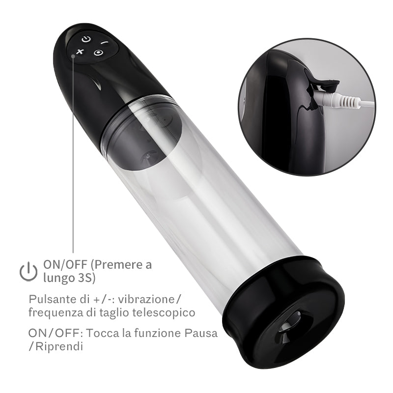 Potente pompa per il pene, aspirazione a 5 frequenze, vibrazione a 7 frequenze, con 2 preservativi