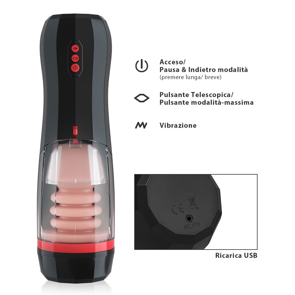 TORNADO 3.0 Versione 7 Vibrante 5 spinte rotanti Pompini Masturbatore
