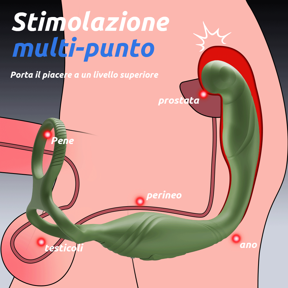 - Rotazione e vibrazione a 360°, intensificano la stimolazione della prostata e del perineo
