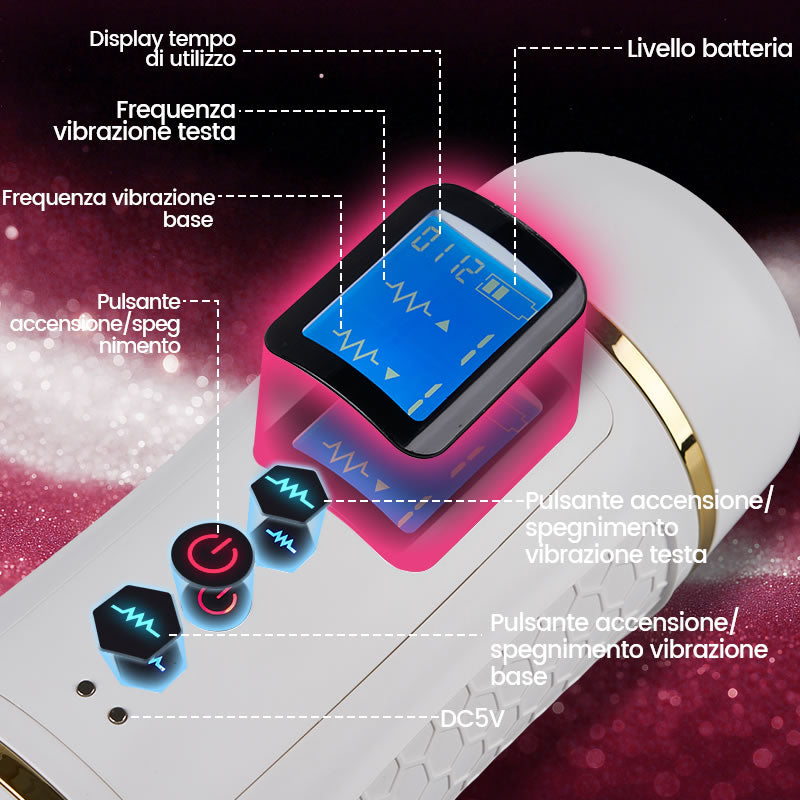 - 10 pattern di vibrazione progettati specificamente per padroneggiare il controllo e prolungare il piacere al limite.
