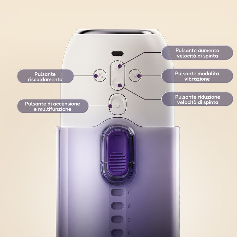 • La fodera interna è progettata con un design di massaggio 3D con una struttura granulare. Stimola continuamente ogni parte della pelle e garantisce una sensazione unica di comfort e attrito. Ogni movimento di estensione e contrazione, così come la modalità di vibrazione, si completano perfettamente, ravvivando ogni dettaglio e garantendo il massimo comfort e soddisfazione.